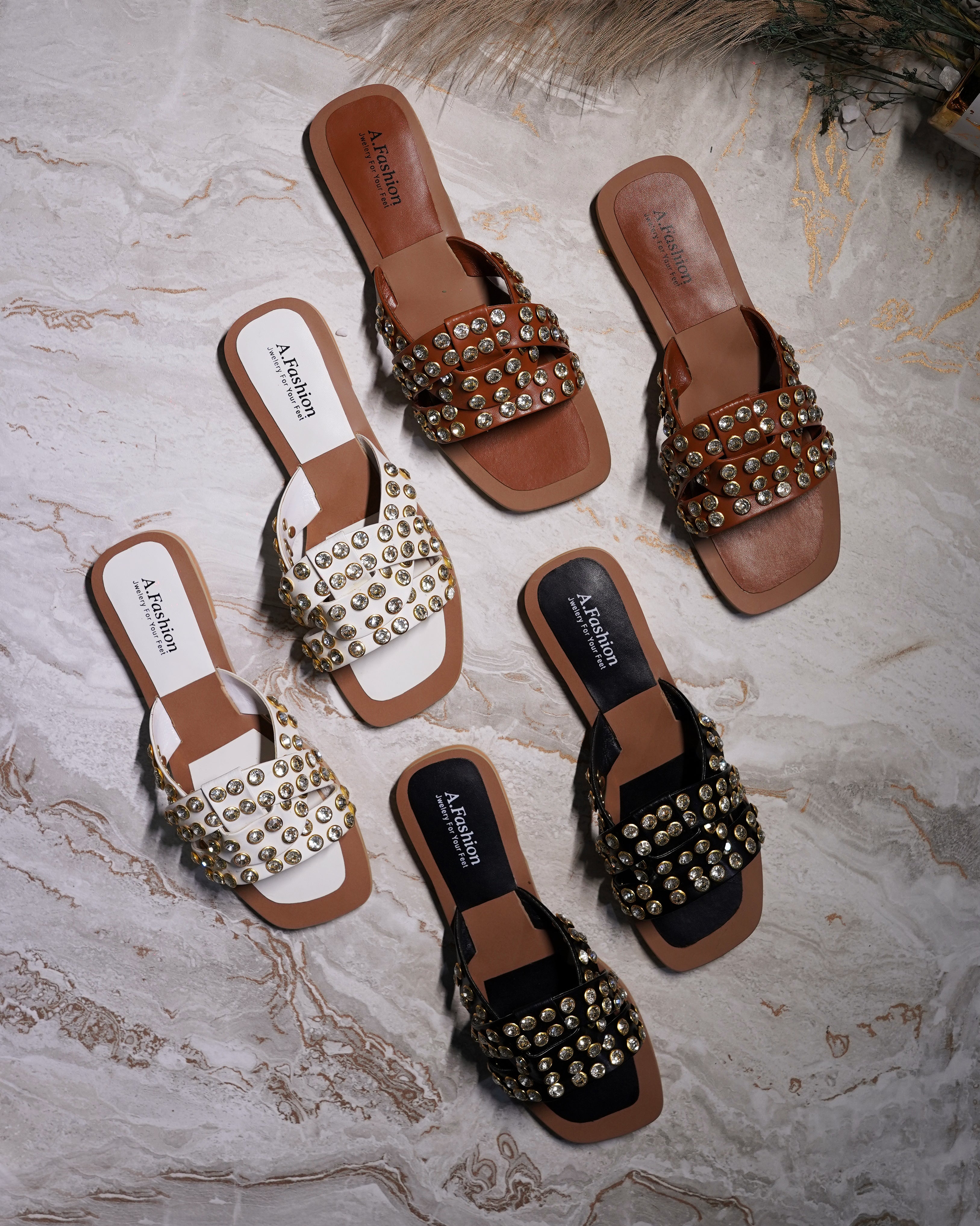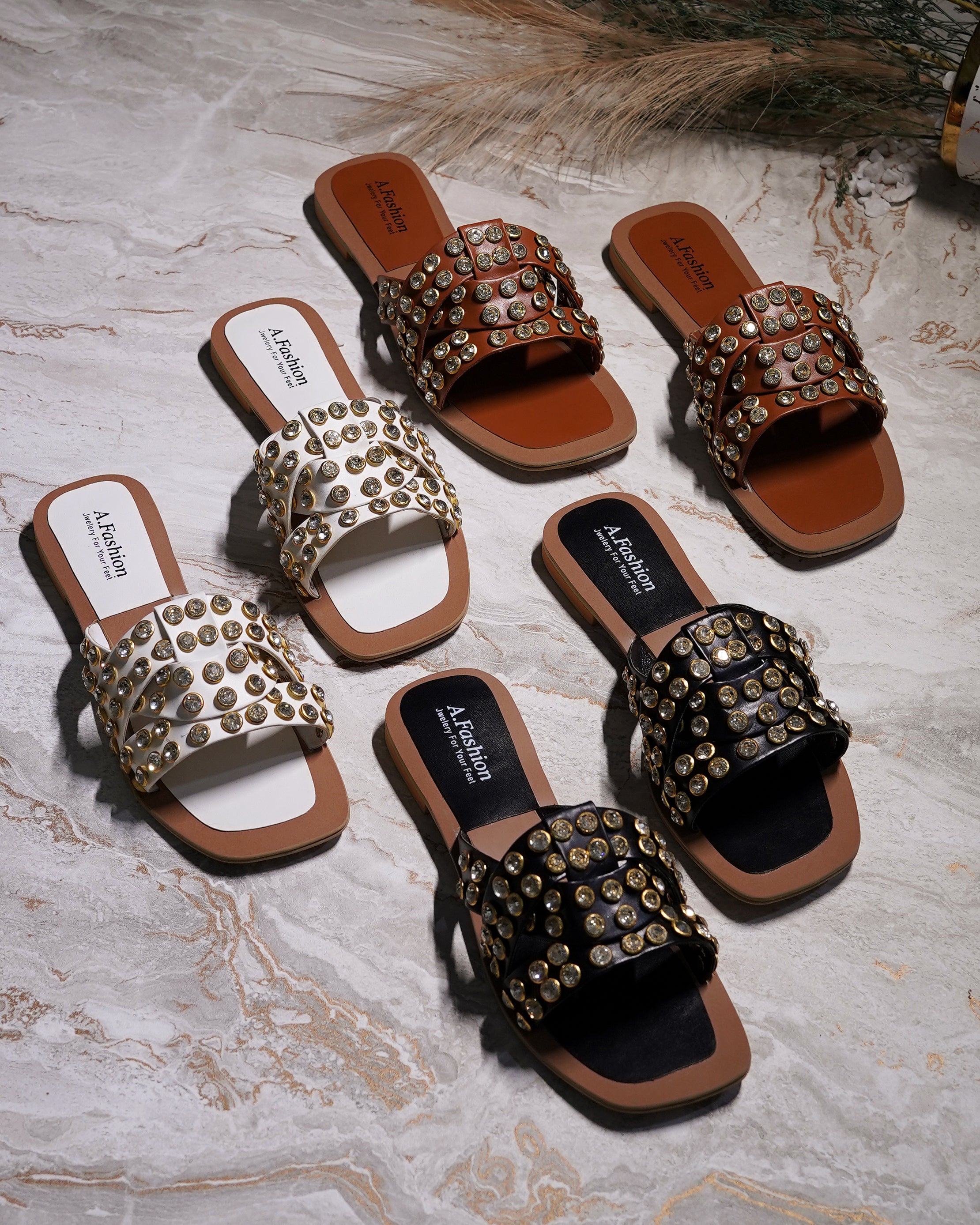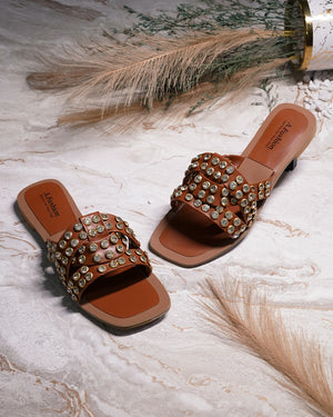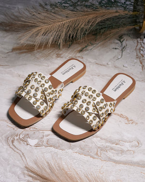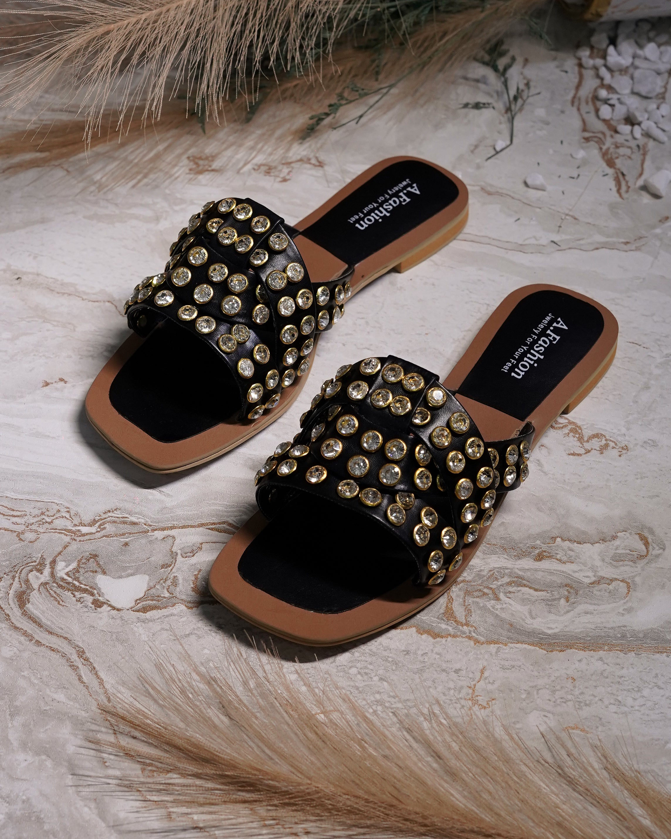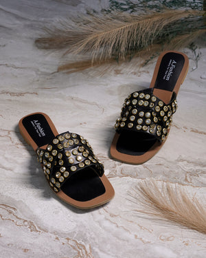 Step into style with our gorgeous Full Stone-Studded Flat Slippers!