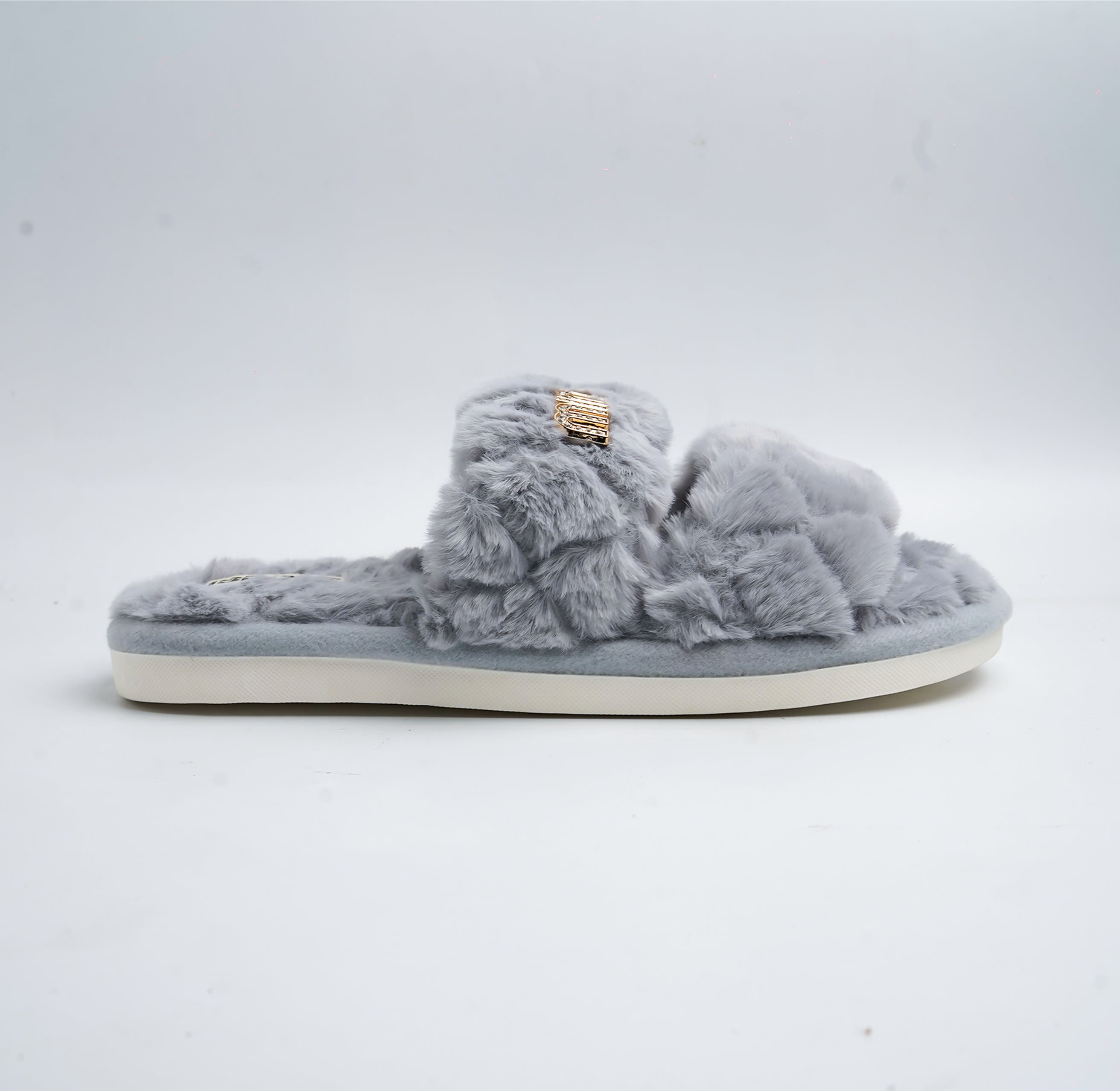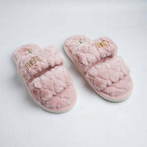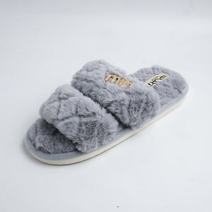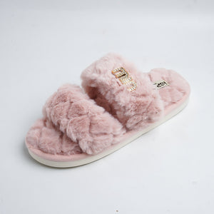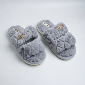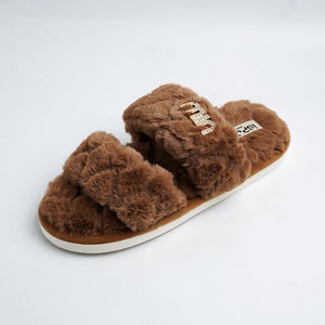 Alayna Fashion | Luxe Faux Fur Double-Strap Logo Slides