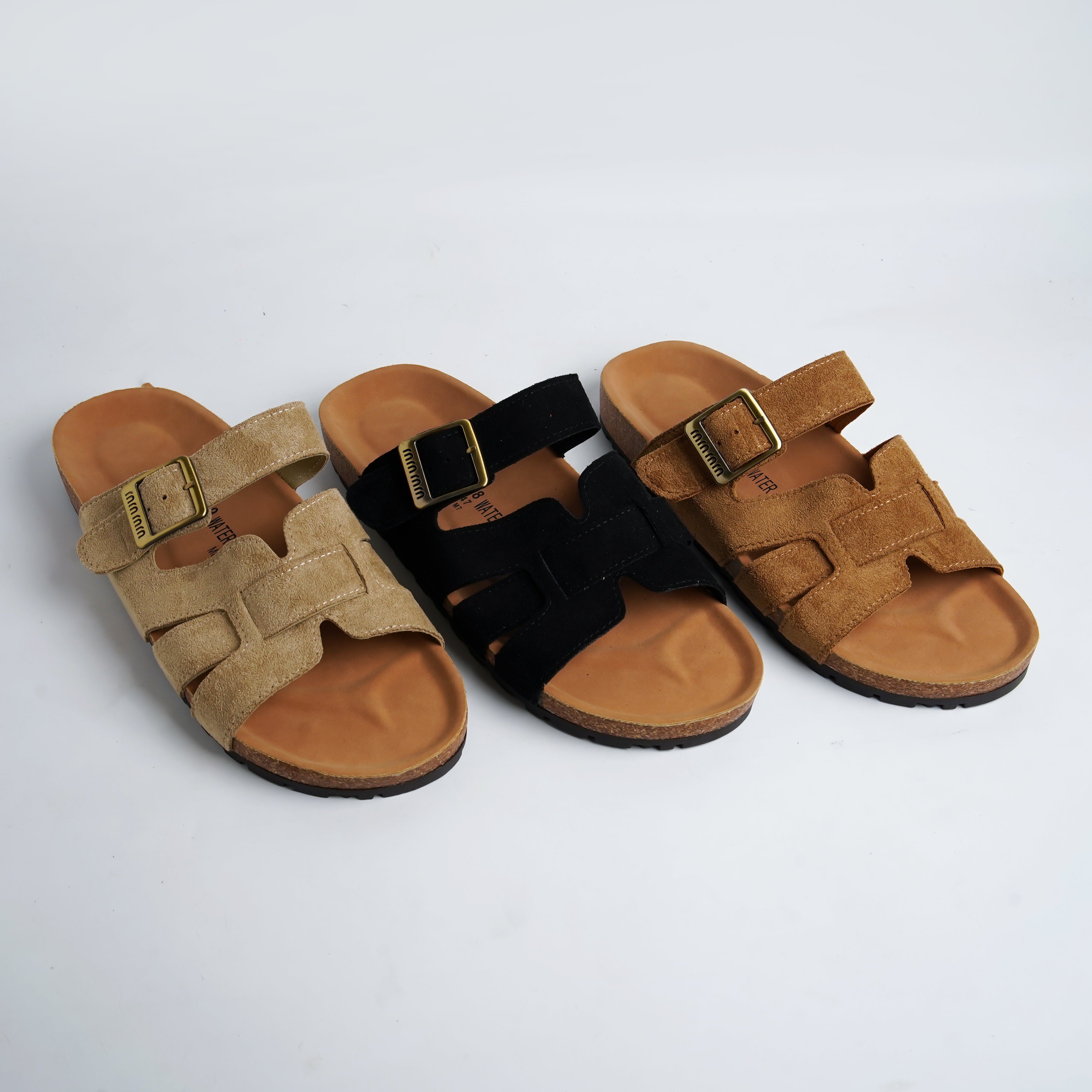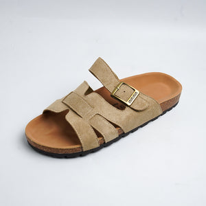 Alayna Fashion | Premium Suede H-Strap Adjustable Cork Slides