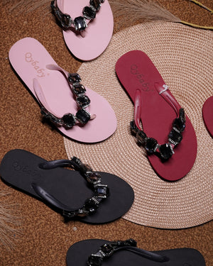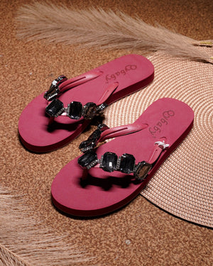 Add a touch of glamour to your casual wear with these stylish imported comfy slippers, beautifully adorned with bold crystal stone embellishments on the strap. Designed to give you both comfort and elegance, they are perfect for daily wear as well as special occasions.