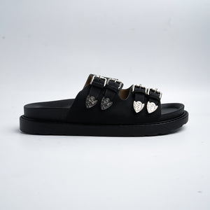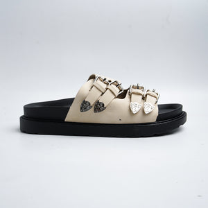 Alayna Fashion | Western Heart-Buckle Double-Strap Platform Slides