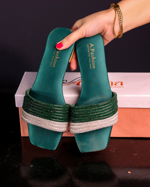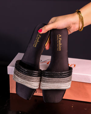 Our Signature Artical ‘Zee’ …! This Captivation Stilleto heels Crafted with Colored Stone ropes , perfect for After-Hours Events,Set on Our signature luctie flats this flirty number is sure to be a seasonal hit…!