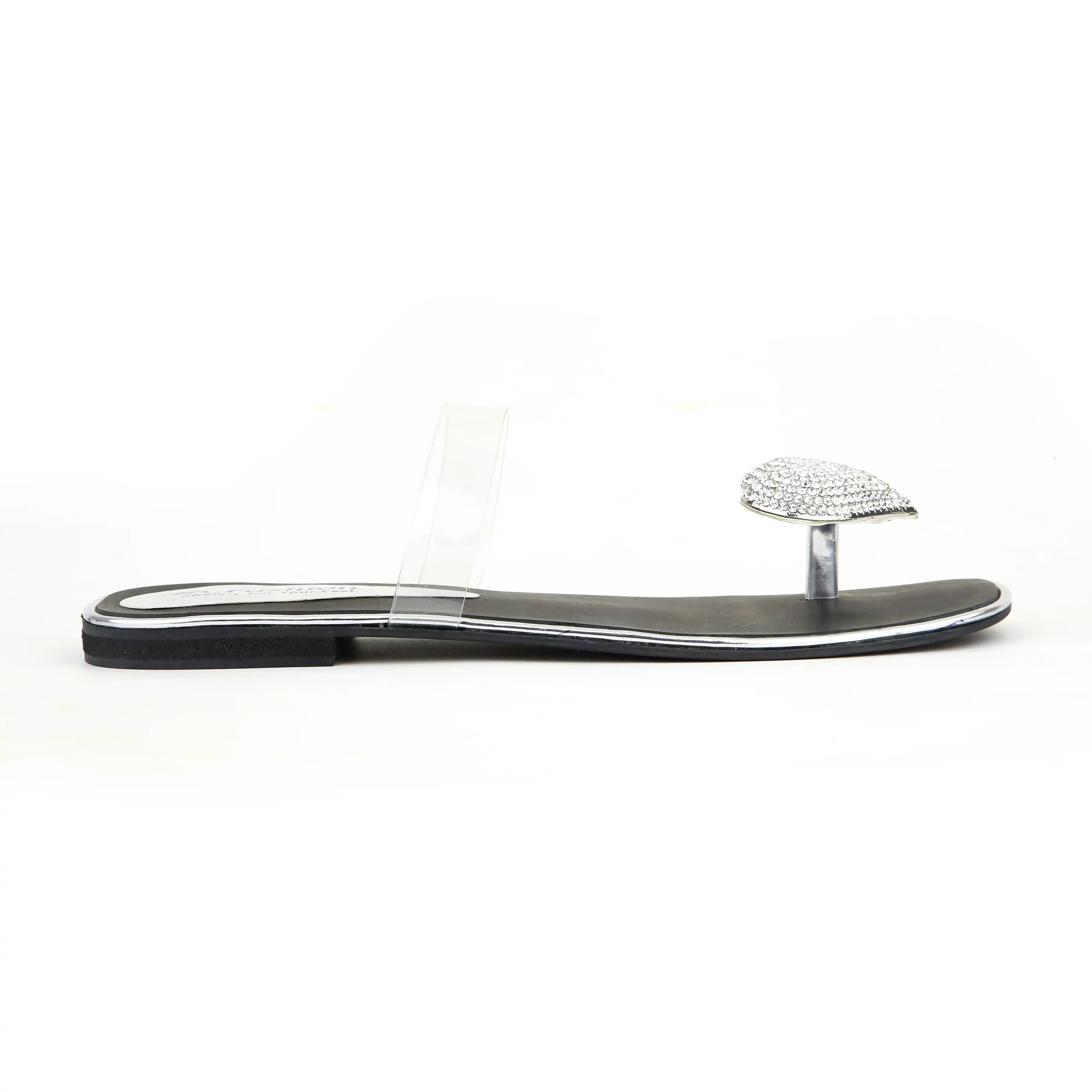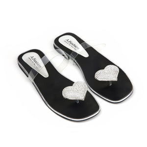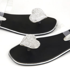 Crafted this designe to add a hint of sparkle and sophistication to your everyday look. Featuring a heart-shaped stone embellishment on the toe and a sleek transparent strap, these slippers combine elegance with a modern, minimalist appeal..!