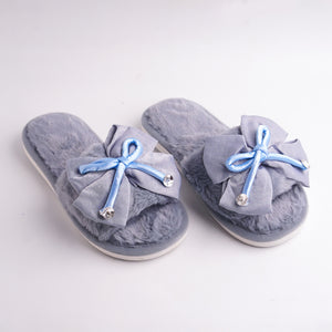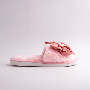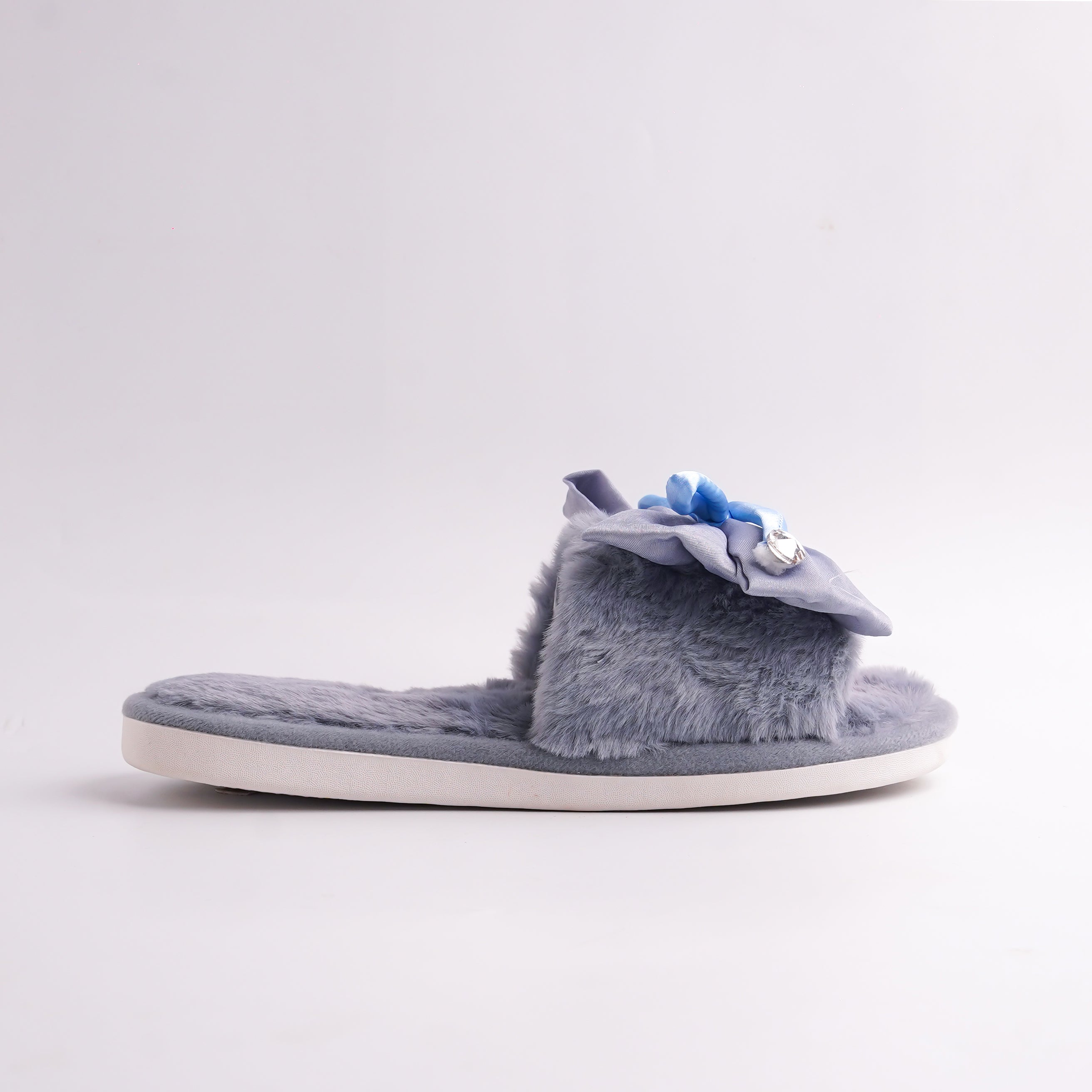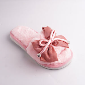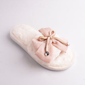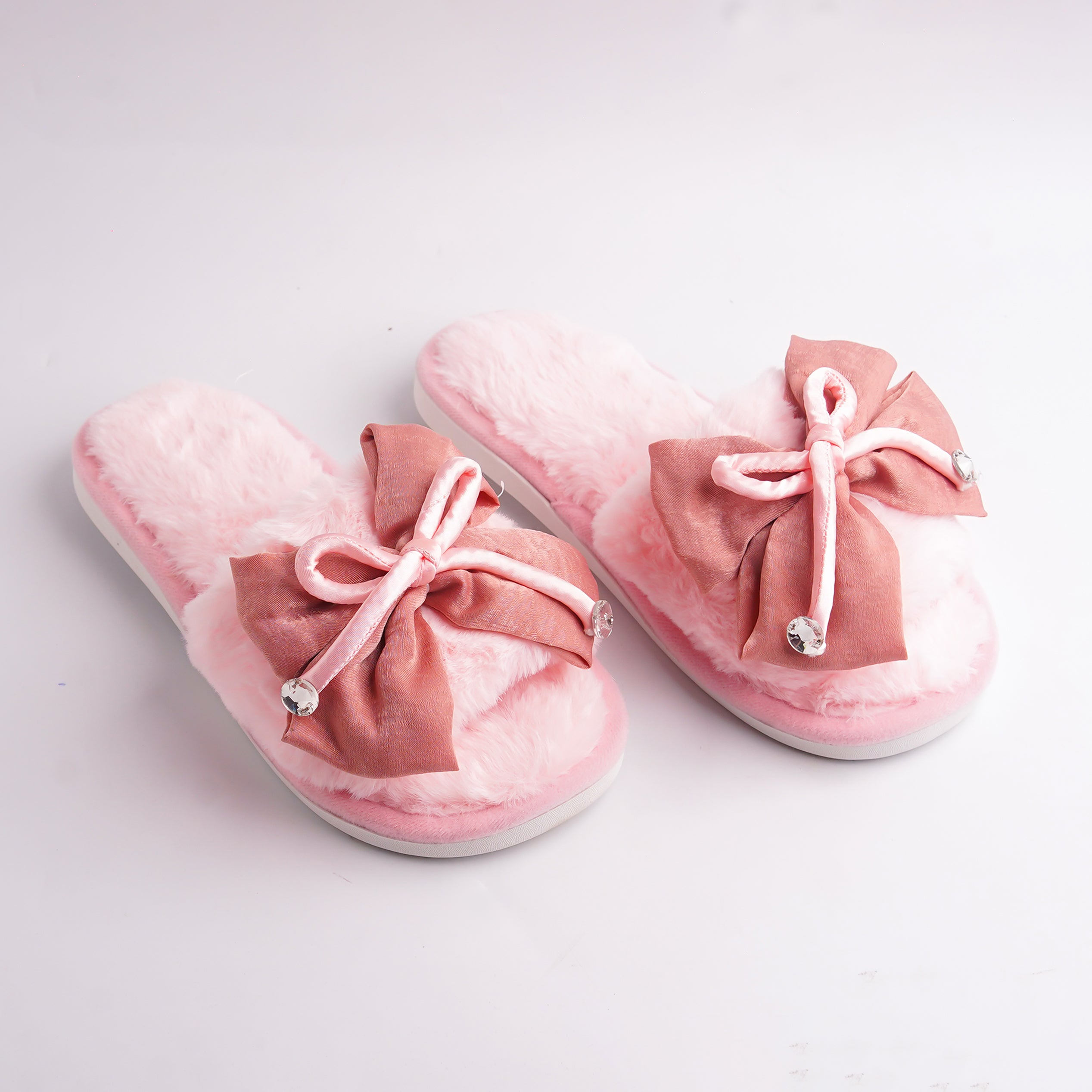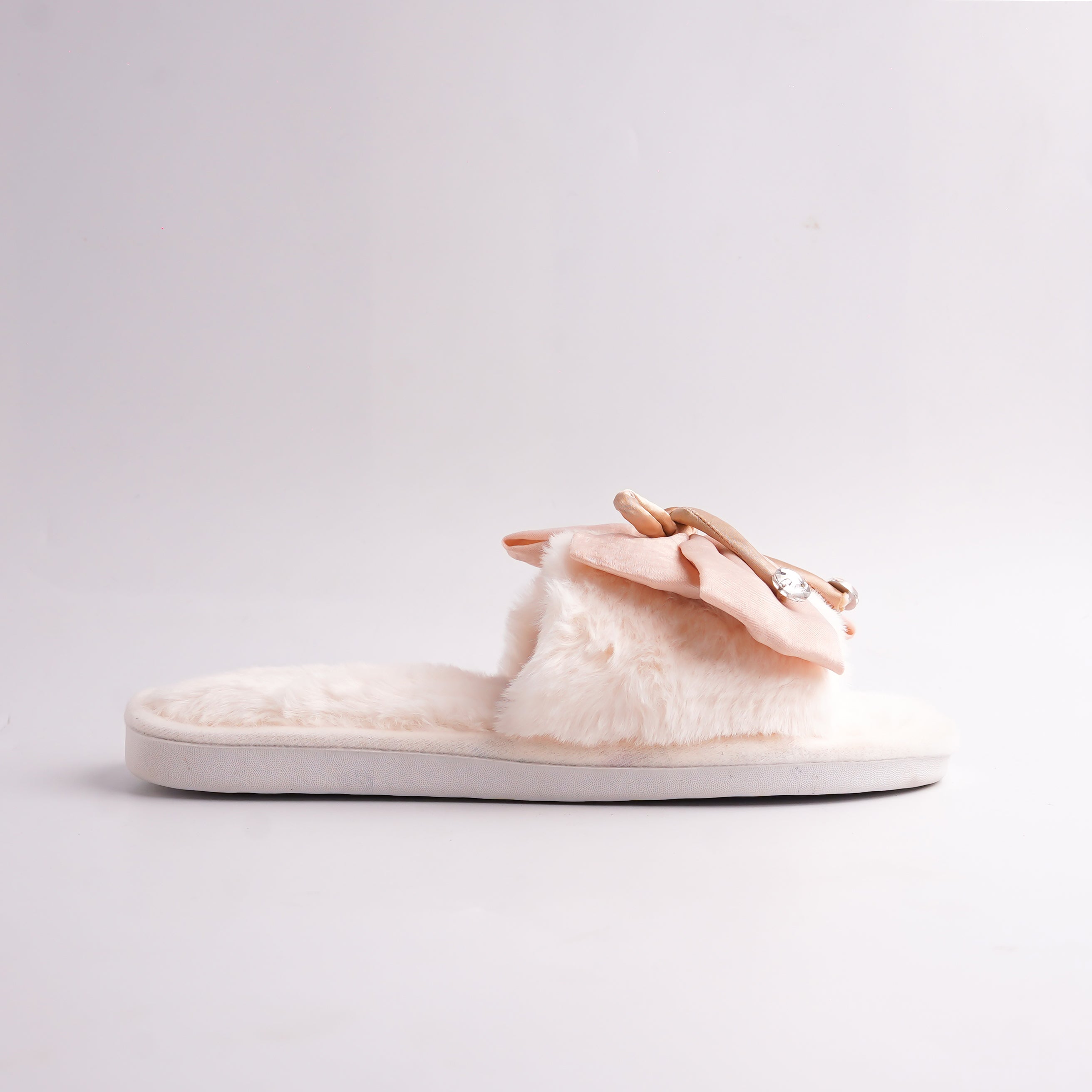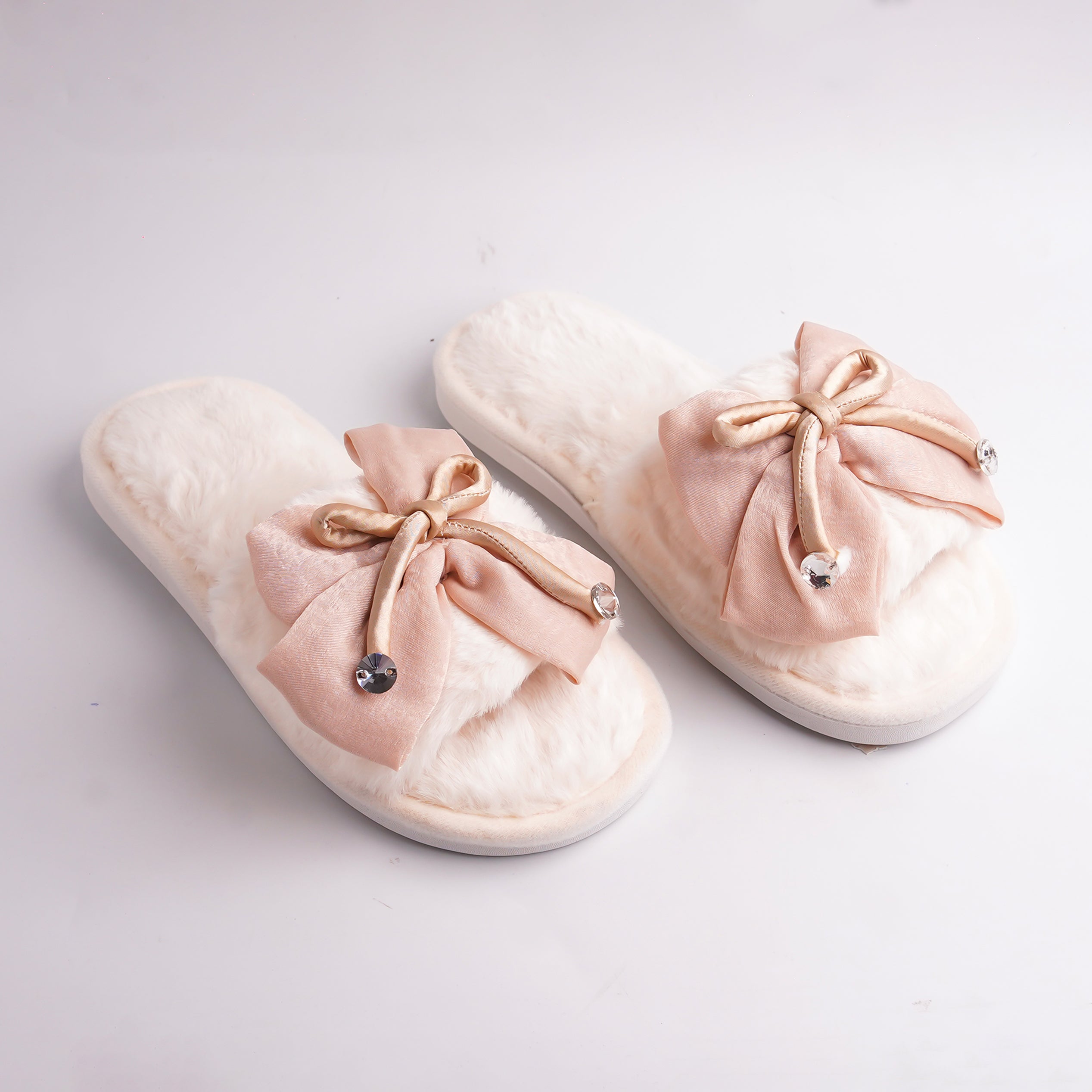 Alayna Fashion | Faux Fur Slides with Crystal Bow – Ladies Luxury Slippers