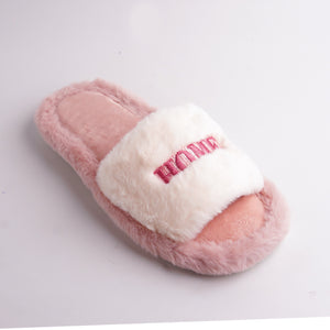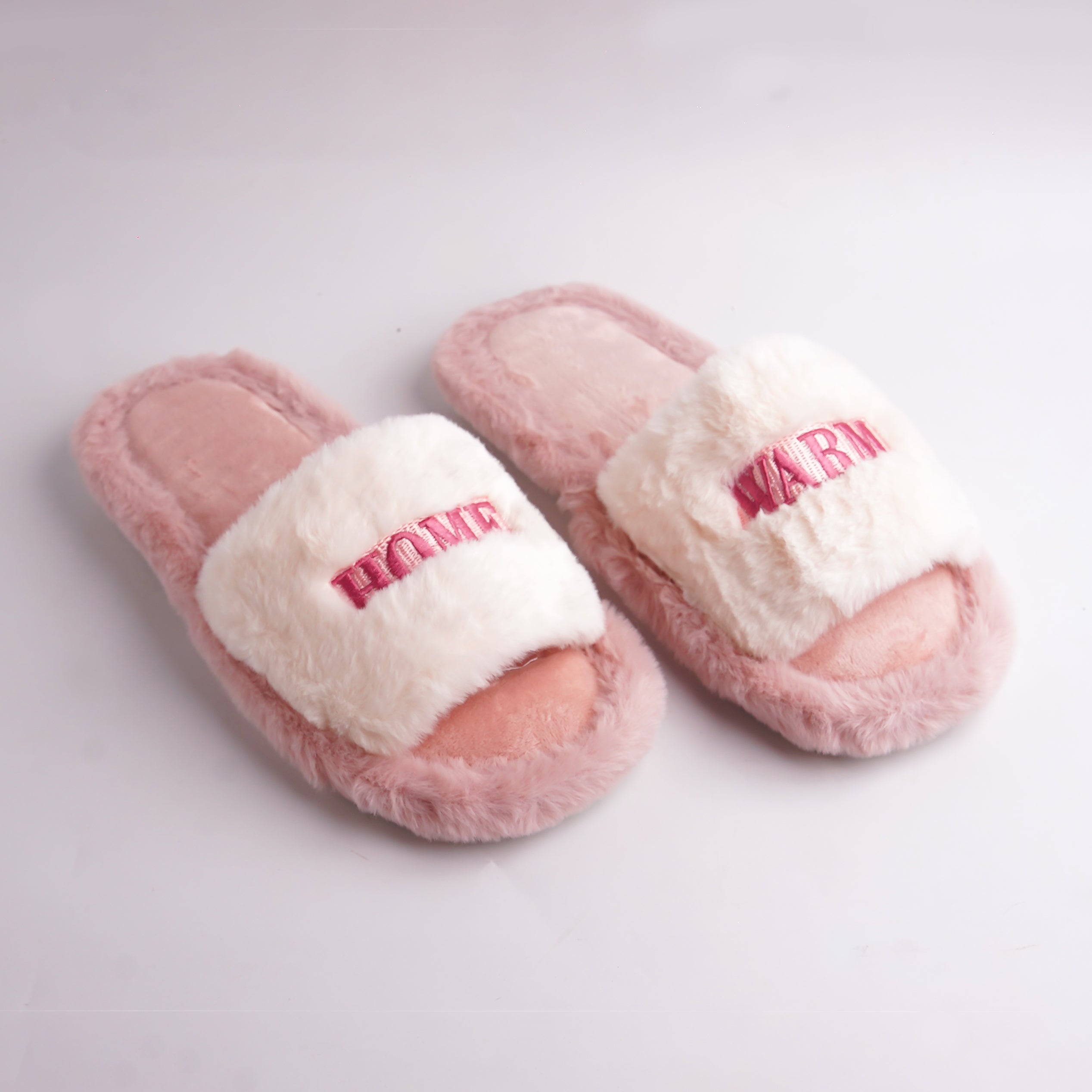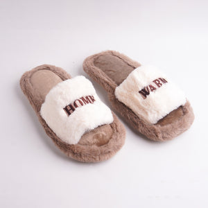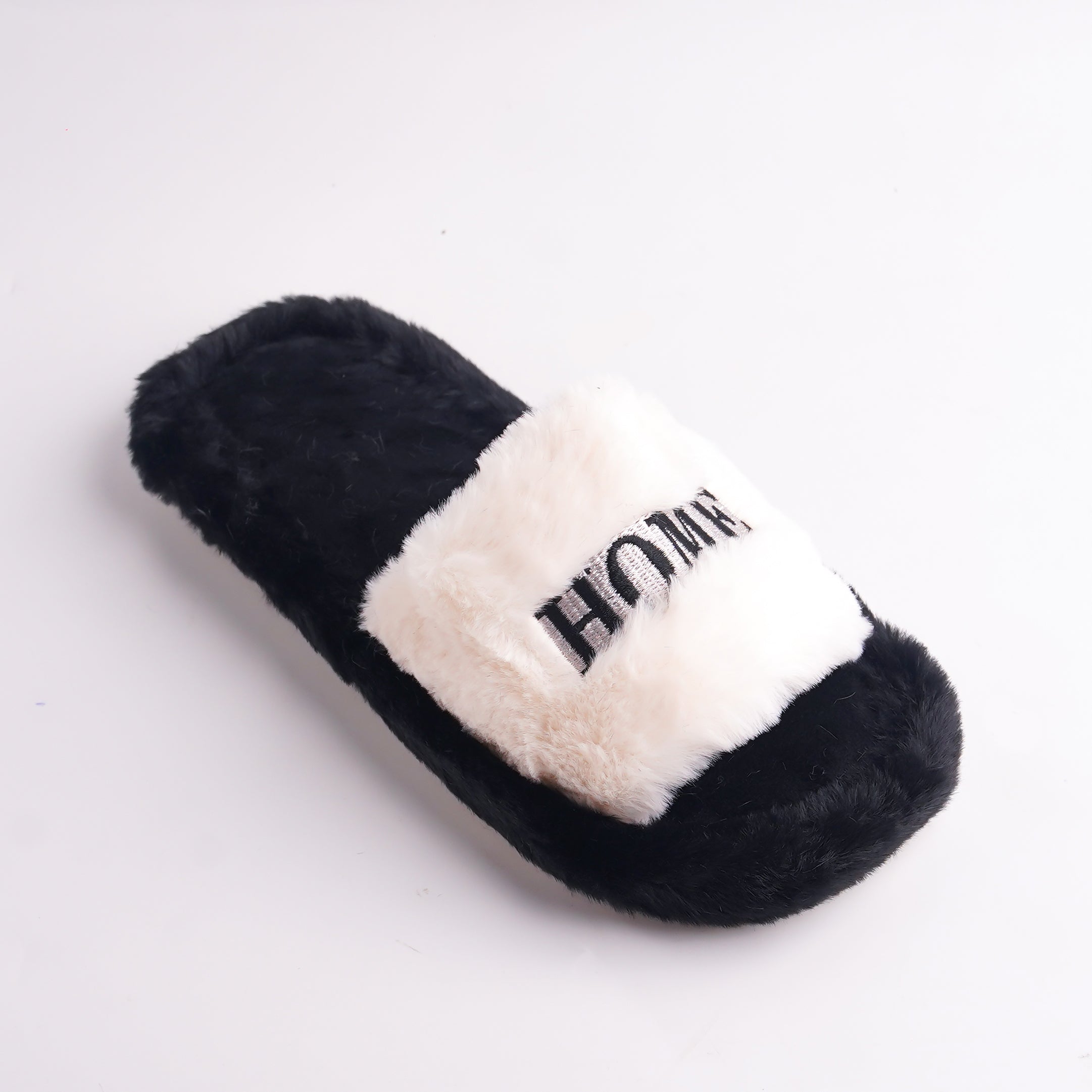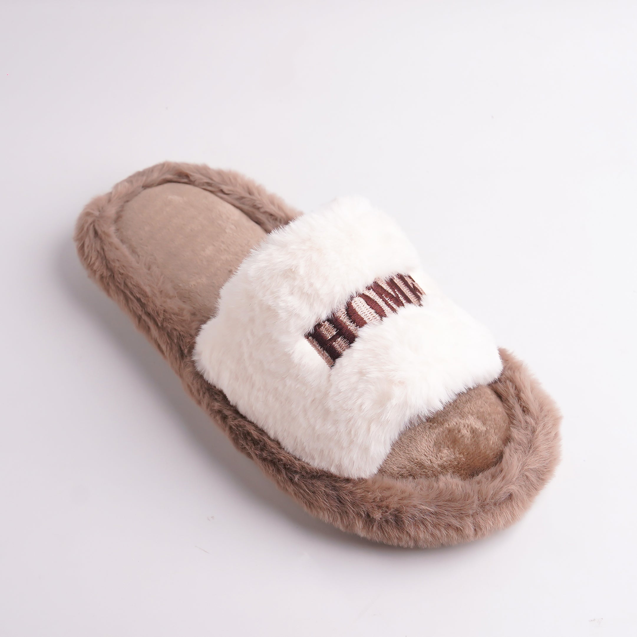 Alayna Fashion | Faux Fur Slides with 'HOME WARM' Embroidery – Cozy Slippers
