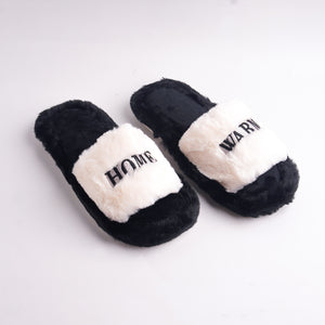 Ultimate Comfort: Faux Fur Slides with 'HOME WARM' Embroidery