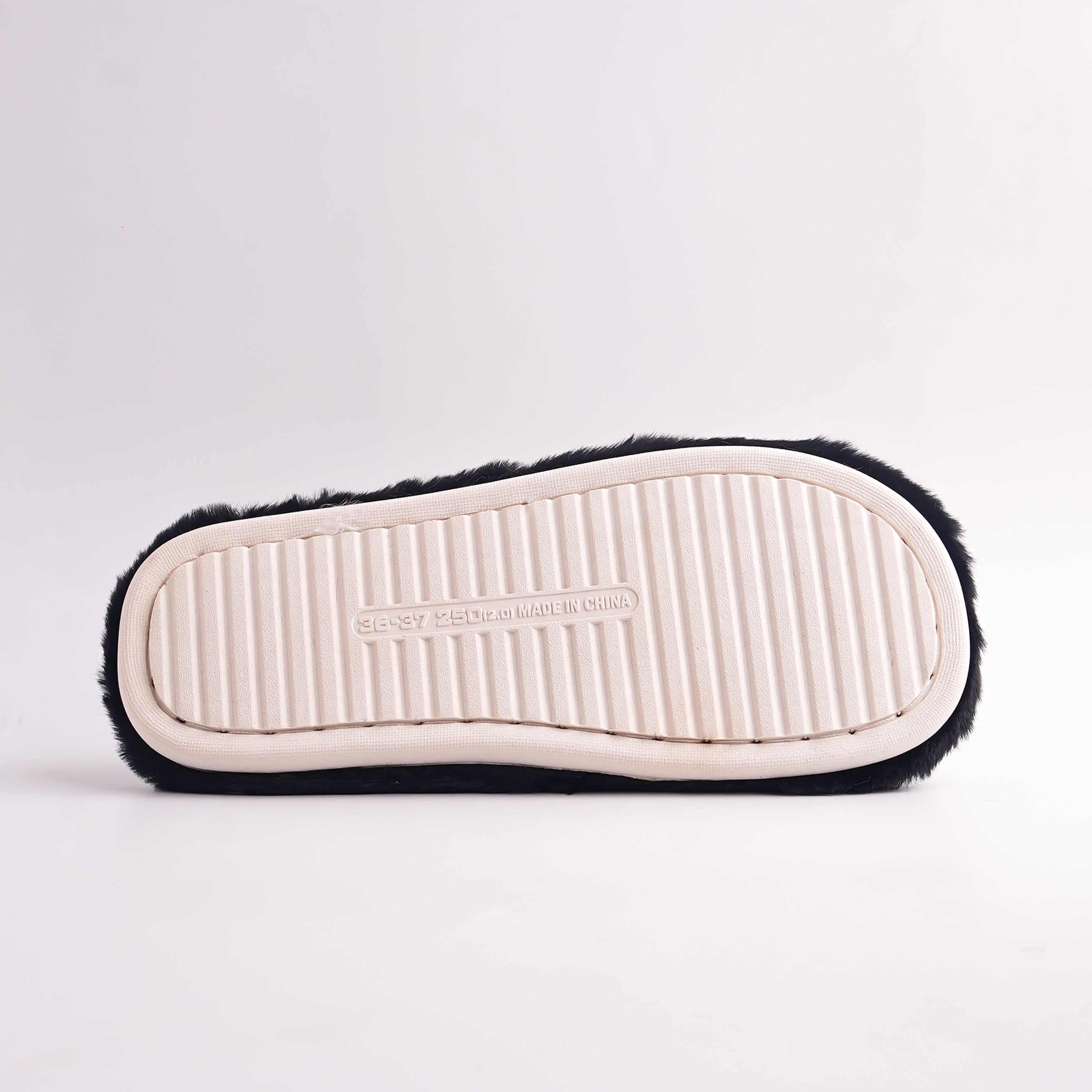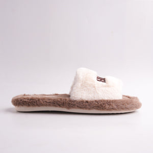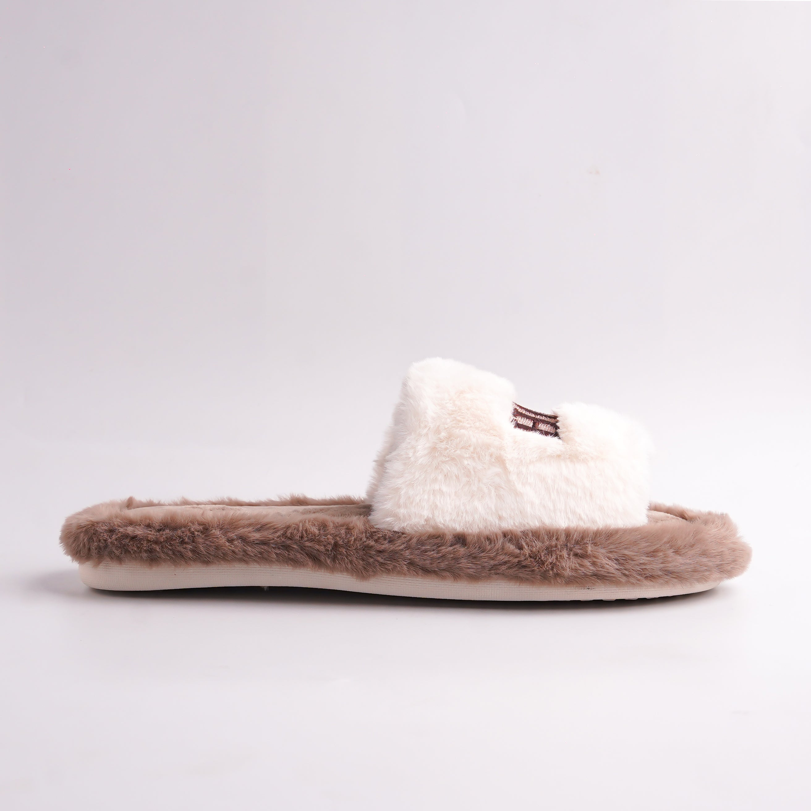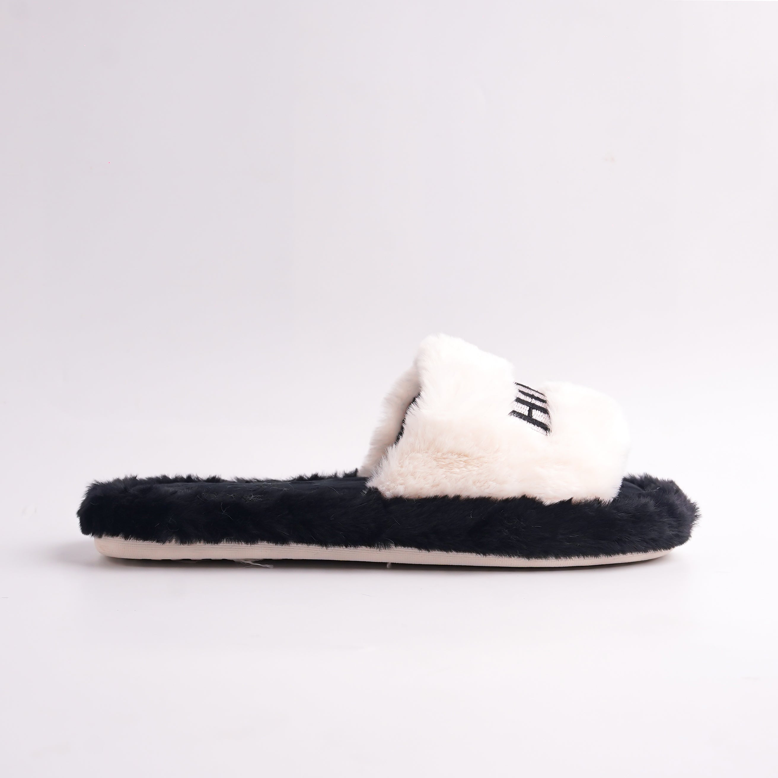 The wide straps are covered in plush white fur, beautifully embroidered with the words 'HOME' and 'WARM' in contrasting thread, adding a heartfelt message to your look. The fur edging and sole provide a subtle, elegant contrast. These are the ultimate Indoor Warm Slides for cold winter mornings or relaxing evenings in Pakistan.