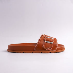 Alayna Fashion | Brown Frayed Edge Cross-Strap Slides