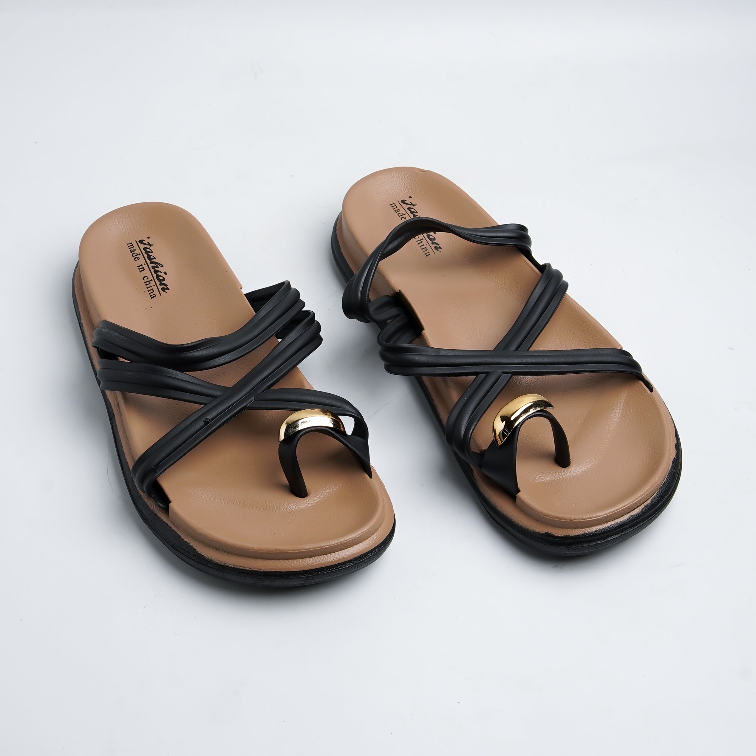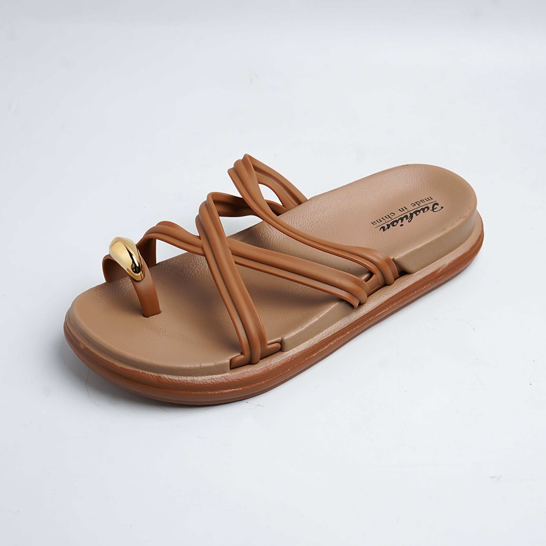 Alayna Fashion | Chic Multi-Strap Criss-Cross Sandals with Gold Toe-Loop