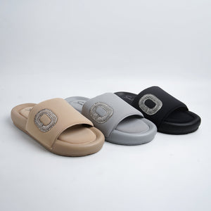 Alayna Fashion | Luxe Crystal Buckle Padded Comfort Slides