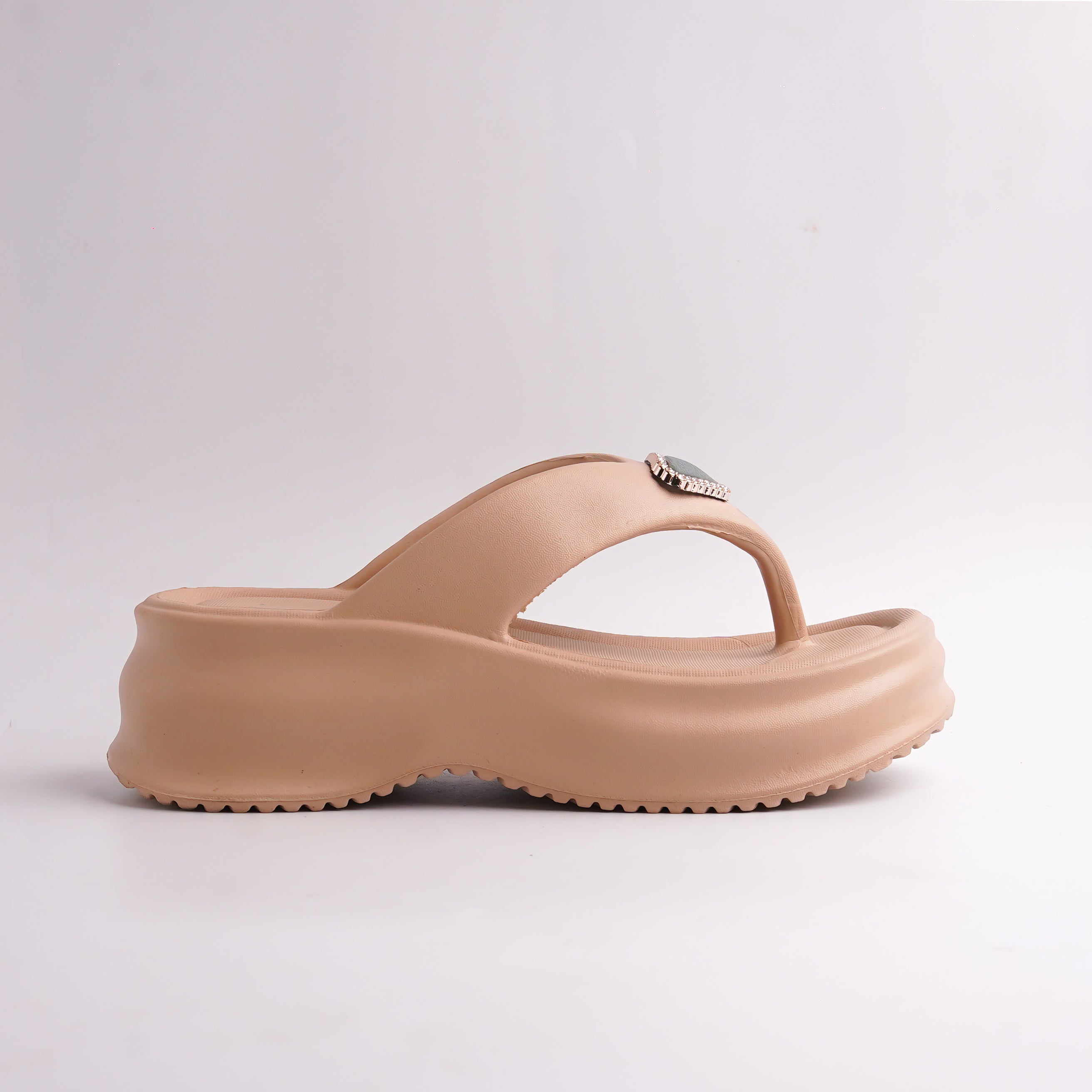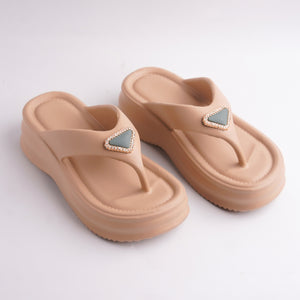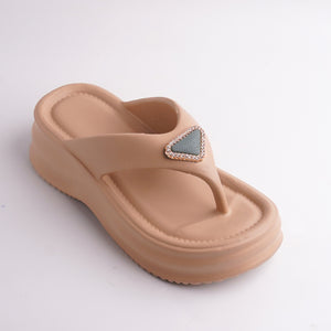 Crafted from a lightweight, cushioned material, the platform sole provides superior shock absorption and a comfortable lift, making them perfect for all-day wear. The wide thong strap is centered with a beautiful triangular rhinestone embellishment, adding a touch of glamour and sophistication that transitions effortlessly from the beach to a casual evening out. The neutral, color ensures they pair perfectly with any outfit in your wardrobe.