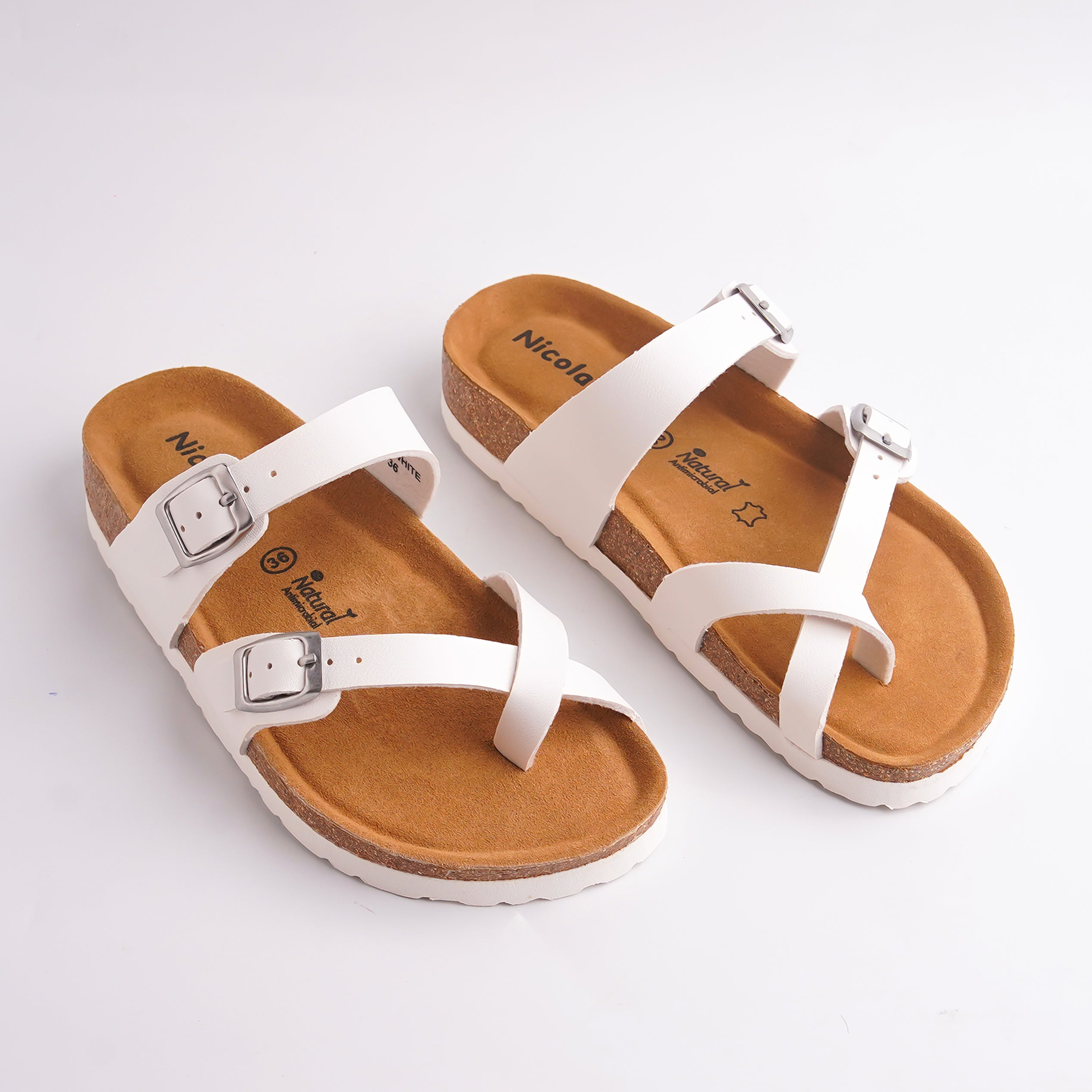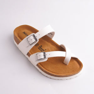 Alayna Fashion | Toe-Loop Cork Comfort Sandals – Double Buckle Nicola Flats