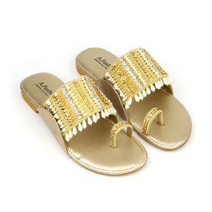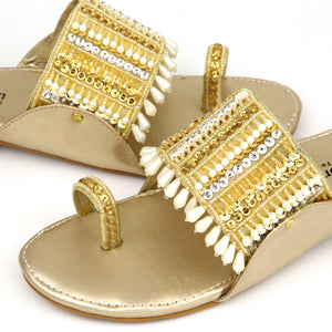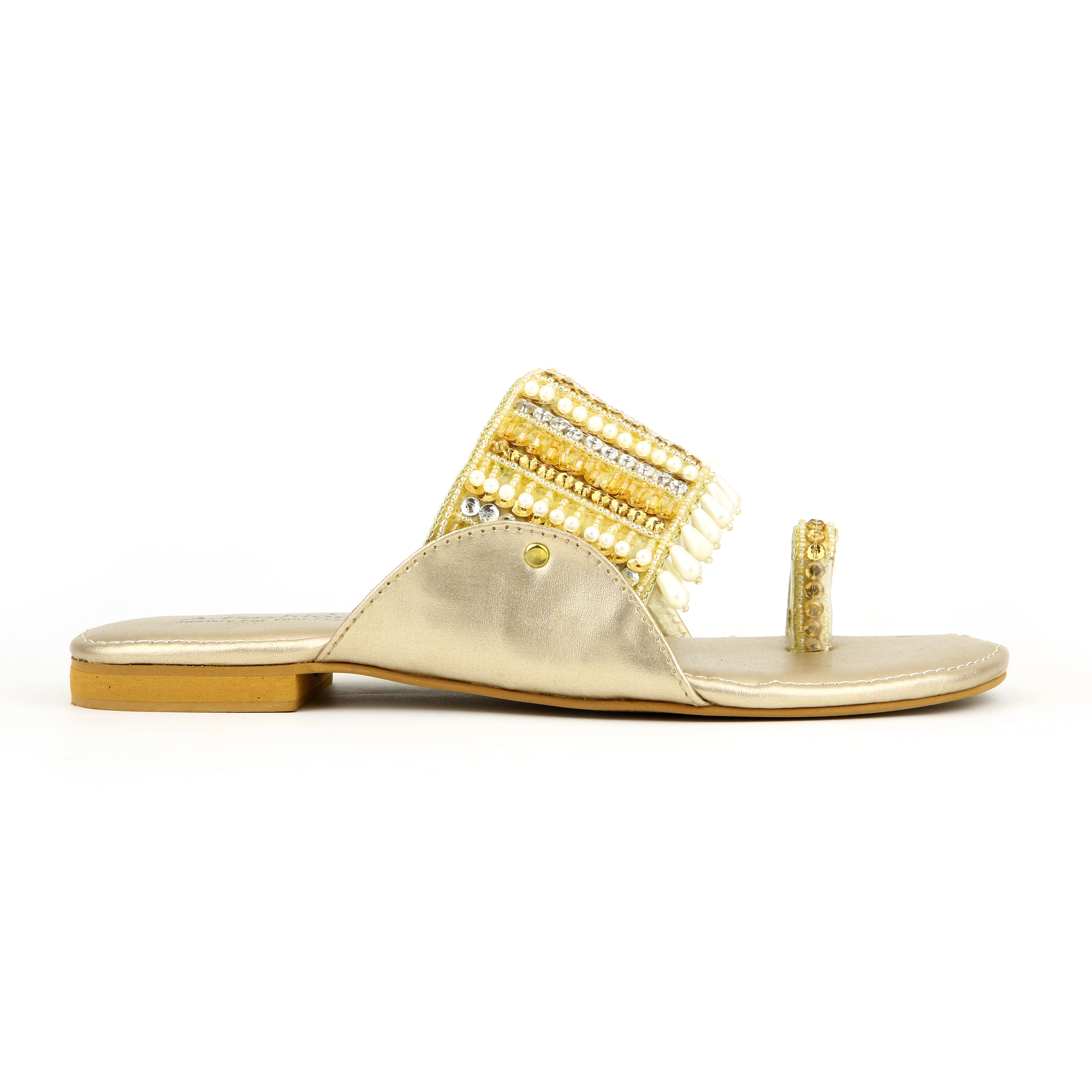 Elevate your ethnic elegance with our Pearl & Moti Work Embroidered Slides, crafted to perfection with exquisite detailing and timeless charm. The heavy embroidered strap adorned with pearls and moti (beads) adds a rich, luxurious touch, while the toe-ring style design ensures a graceful and secure fit.