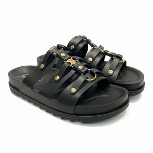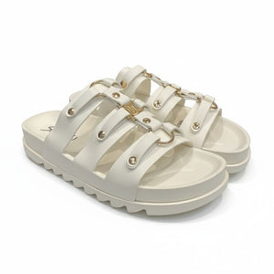 The defining feature of these chunky slip-ons is the stunning multi-strap design, accented with signature gold-toned hardware and rings that catch the light beautifully. The high-profile platform sole is engineered for comfort, offering a lightweight feel that doesn't compromise on durability.