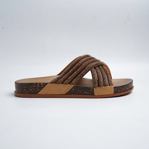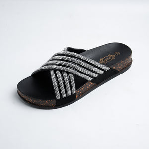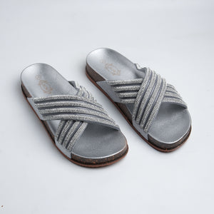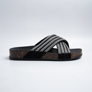 Alayna Fashion | Shimmering Rhinestone Multi-Strap Cross Slides